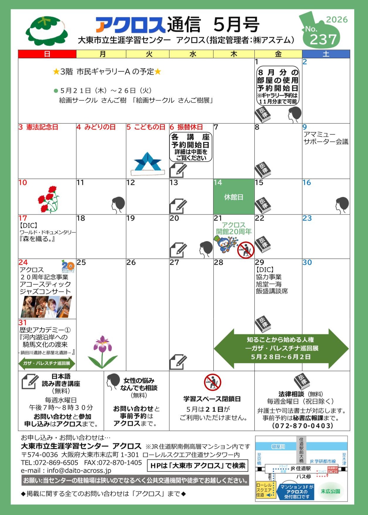 毎月発行:イベントカレンダー・イベントリポート・サークル情報などアクロスからの情報もりだくさん